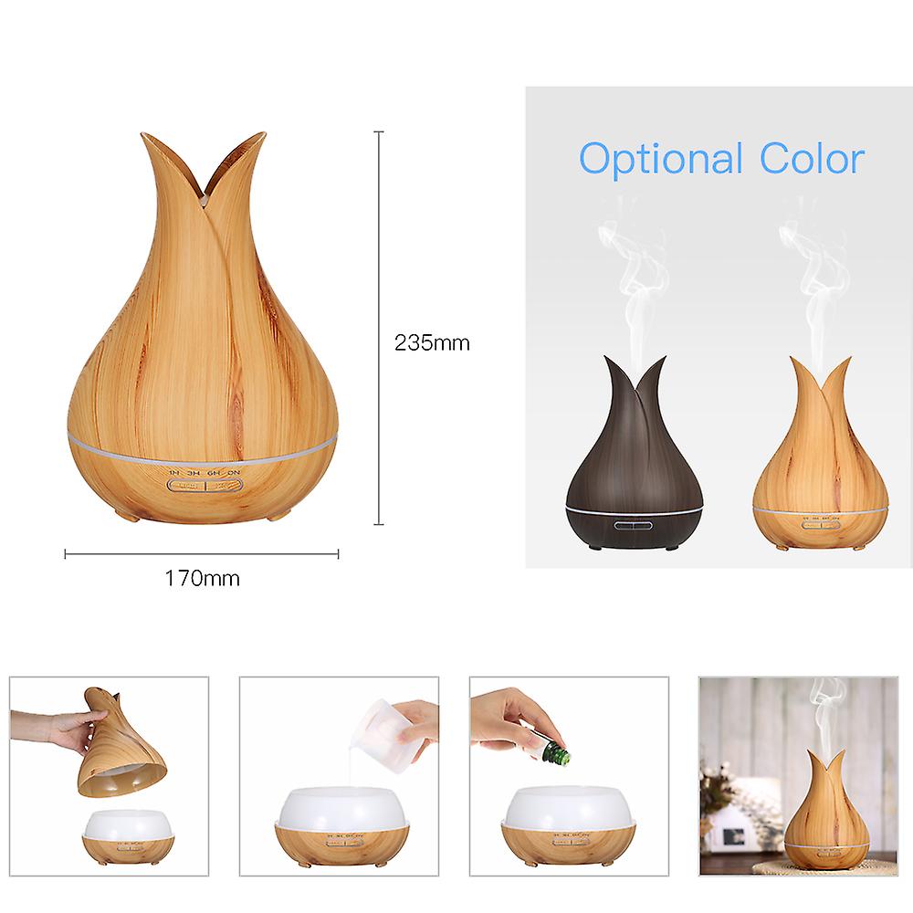 AC100-240V 14W 6 LED Aroma Diffuser Humidifier 400ml Big Capacity with Remote Control Supported 4 Levels Timng Function Timer 7 Colors Changing Static Color Mist Control for Nursery Spa Yoga Club Fitness Centure light wood grain us plug- Brand: Unbranded